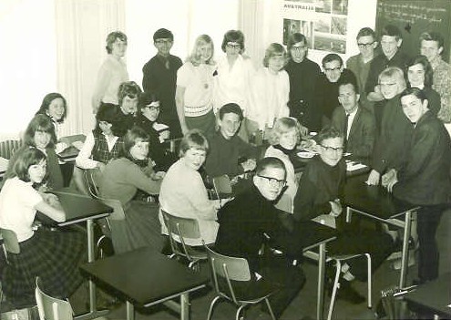 Staand vlnr: Iris van der Kleij*, Melvyn Kneefel (overleden), Lineke Urgert, Anneke Schubart*, Thea de Ridder*, Trix Davids Richards*, Koos Meij*, Ewout van Boven*, John Jansen*, Hilbrand Hofman*, Joke Hendriks*, Yvonne Munts (overleden) en Henk Dallinga*. Leraar: dhr. P. Bleijenberg (overleden). Voorste rij, bij het bord, vlnr: Janet van der Meij, Janny van Gijzel*, Ed van den Dobbelsteen*, Anneke Bruggemans* en Lex Trok (overleden). Tweede rij vlnr: Yvonne Claessens*, Meity (nu Alice) Linthout*, Henriëtte (Jetje) van der Hout*, Marianne Beekhuizen* en Henk Poelstra*. Achterste twee vlnr: Marja Pol* en Jannie Brussee*. *) adres bekend of leerling staat op SchoolBank.nl. 21-05-2010 Andere namen die worden genoemd zijn Kees Kulk, Wim Bloemendaal*, Maaike van Huisstede*, Ronald Heheman*, Peter Ruben(s), Monique den Hertog, Merle Kneefel, Hans .......... en Lucien Bergamin* |
