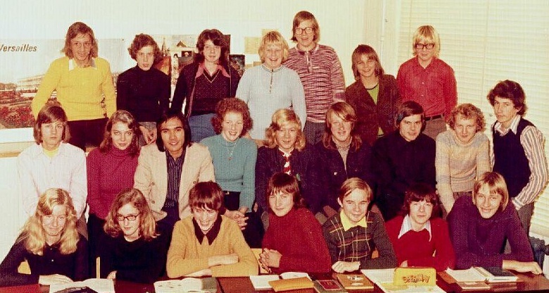 Achterste rij vlnr: Rolf Tempelaar*, Karel van de Noort*, Mary van Delden*, Ruud van Broekhoven*, Dirk Waldschmit*, Arie Plugge en Johan (Beertje) Vink*. Middelste rij vlnr: Paul van Leeuwen*, Petra Ludwig, dhr. E. Huster*, Marja van de Marel, John Kroon*, Theo Visser*, Anton van den Boom*, Geert van Rhijn* en Albert Hollander*. Voorste rij vlnr: Birgitta Veersema*, Helène Plugge*, Bert Hegie*, Jan Steketee*, Johan Spaans, Gerard Spaans* en Lars de Groot*. *) adres bekend of leerling staat op SchoolBank.nl. 07-03-2011 |