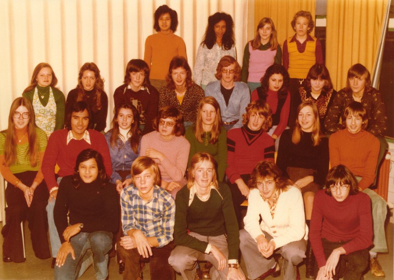 Achterste rij vlnr: Bryan Tjin a Lim, Mieke (Annemieke) Carels (overleden), Annemarie van der Zwan en René Leenart*. Tweede rij van achteren vlnr: Astrid de Koning, Jacqueline Taal*, Wim Streefland*, Dick Pronk*, Fred Nederpel*, Marion Hendriks*, Irene van Geen* en Mike Bartels*. Tweede rij van voren vlnr: Emma Ros*, dhr. E. Huster*, Sylvia Ammerlaan*, Bob Siderius*, Addy van der Lede*, Jan Moerland*, Marina Leurdijk* en Tony Rog*. Voorste rij vlnr: Angelo Witmus*, Hans Kulk*, Kees van Hattem*, Ron Tromp* en Rob Rombout*. *) adres bekend of leerling staat op SchoolBank.nl. 08-01-2008 |