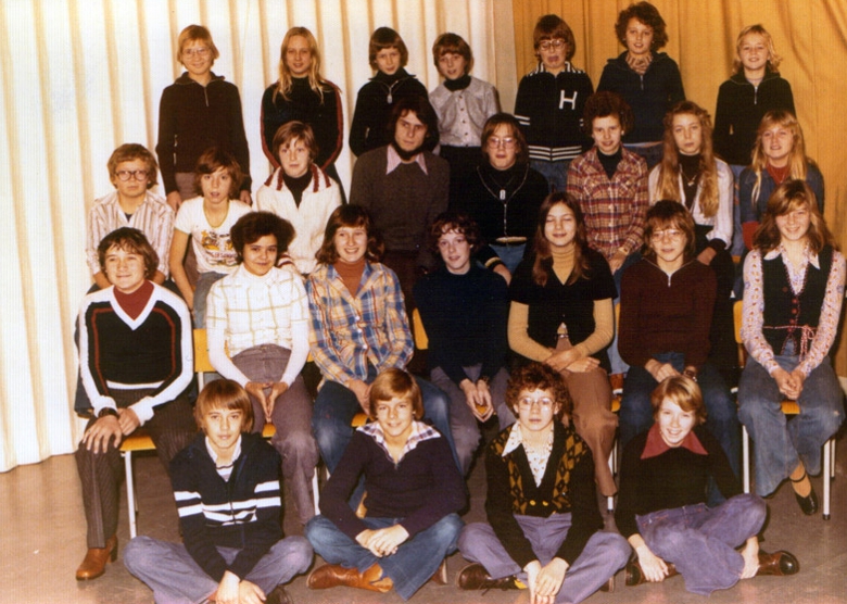 Achterste rij vlnr: Paul Vos, Elles Noyens, Ruud van der Nol*, Jil van Bree*, Evert Wagter*, Peter Oldenburg* en Marco van Oosten*. Tweede rij van achteren vlnr: Jan van der Heijde*, Edwin de Wit (overleden), Annemarie Brouwer*, Fred J. Hagelaars, dhr. J. Peeters*, Jacqueline van Wijk*, Jacqueline Hes*, Desirée Harteveld en ???????. Tweede rij van voren vlnr: Govert van 't Vliet, Joyce Versluis, Desirée Vink*, ???????, Francina Lentjes, Hans .......... en ???????. Voorste rij vlnr : Leo Degenhardt*, Edwin Harteveld*, ??????? en Jolanda Plugge*. *) adres bekend of leerling staat op SchoolBank.nl. 28-05-2010 |