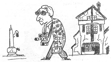 met zijn fototoestellen, sommigen lagen te zonnebaden.